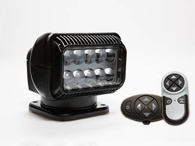 Permanent LED Spotlight with Wireless Hand Held & Wireless Dash Mount Remote.12V, 3.5 AMP, 40W. Package includes Light, Gasket, Caps, Screws, Wireless Hand Dash Remote, Wireless Dash Remote