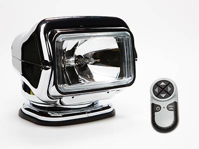 Permanent HID Spotlight with Wireless Hand Held Remote.12V, 3.5 AMP Continuous Draw,8 AMP Cold Start Max, 40W. Package includes Light, Stainless Steel Mounting Plate, Wireless Hand Held Remote, Mounting Plate Screws, Cord Grommet