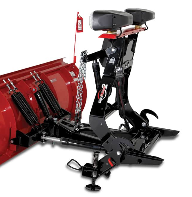 The WESTERN® UltraMount® 2 system features a simple mechanical chain lift. This provides instantaneous float so the blade can freely follow the contours of uneven ground for a cleaner scrape. The chain lift allows WESTERN plows to stack higher than plows with cylinder lift systems, which are limited by the range ofthe hydraulic ram stroke. And in the rare event of a hydraulic failure, you can push the plow into a snow bank, and easily "short chain" the plow for emergency transport. ONE TRUCK. ONE CONTROL. ANY PLOW. The FLEET FLEX electrical system provides true fleet interchangeability among current UltraMount® and UltraMount® 2 mounted snowplows. The same hand-held control or joystick can operate all WESTERN® commercial grade snowplows.