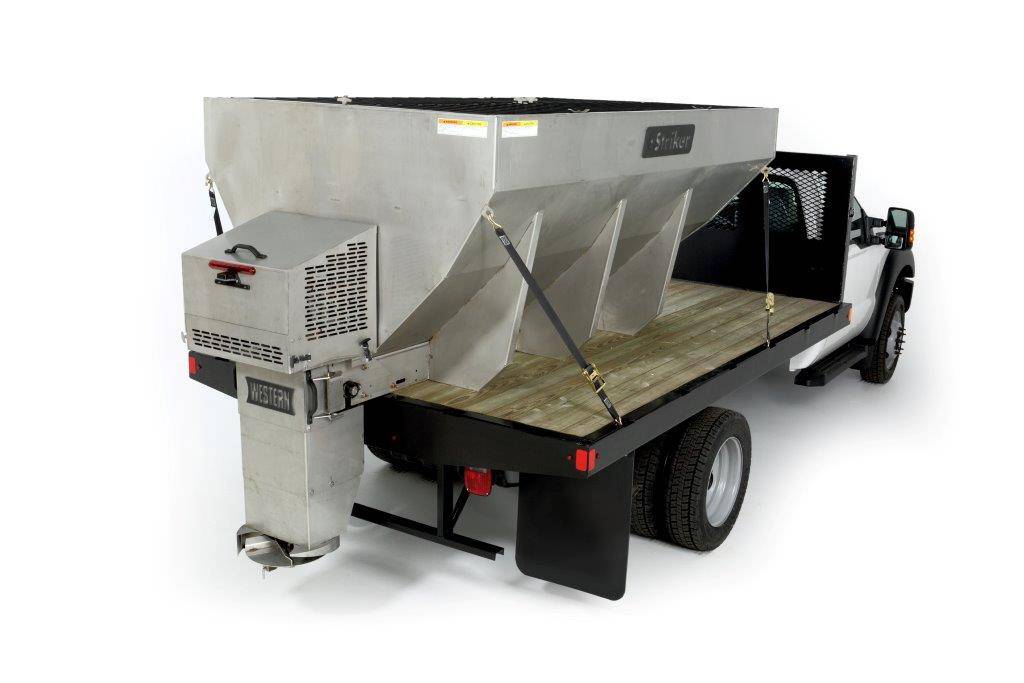 Minimize waste and maximize profits with the new WESTERN® Striker stainless steel hopper spreader. Optimize material distribution with the innovative chute design and protect nearby surroundings with the unique circular shutter deflector. Ultra-durable and loaded with the latest in snow and ice control technology, the Striker hopper spreader raises the bar for commercial de-icing performance. SIX SIZE OPTIONS WITH STANDARD FEATURES Choose from: