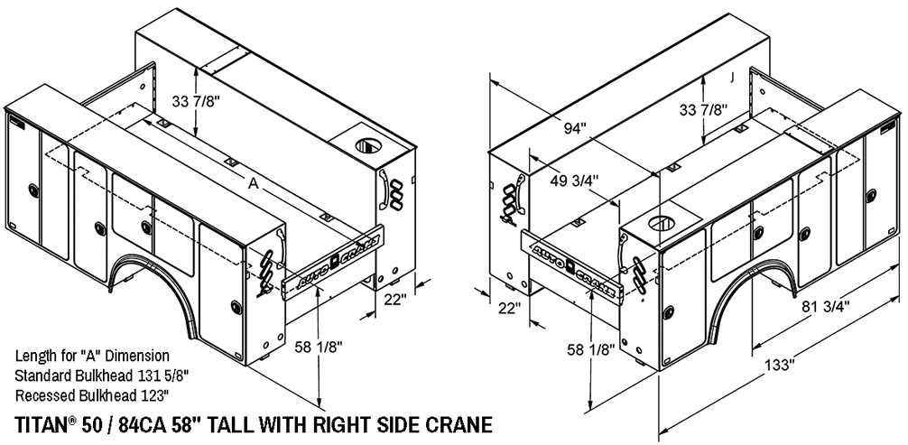 Patented one-piece 10 gauge (3.6mm) side-pack design for rugged, offroad use minimizes weld seams for less cracking and rust. Integral crane box transfers load directly to outriggers reducing stress on the chassis -- reinforced up to 50,000 ft lb (6.97 tM). Internal stainless steel hinges reduce potential corrosion points. Double-paneled galvanneal doors for added strength. Fully undercoated for rust prevention.