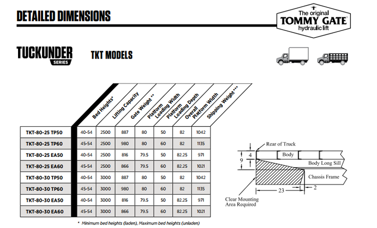 Tommy Gate Flatbed & Van - Tuckunder Series: TKT (TKT-80-25 TP60)