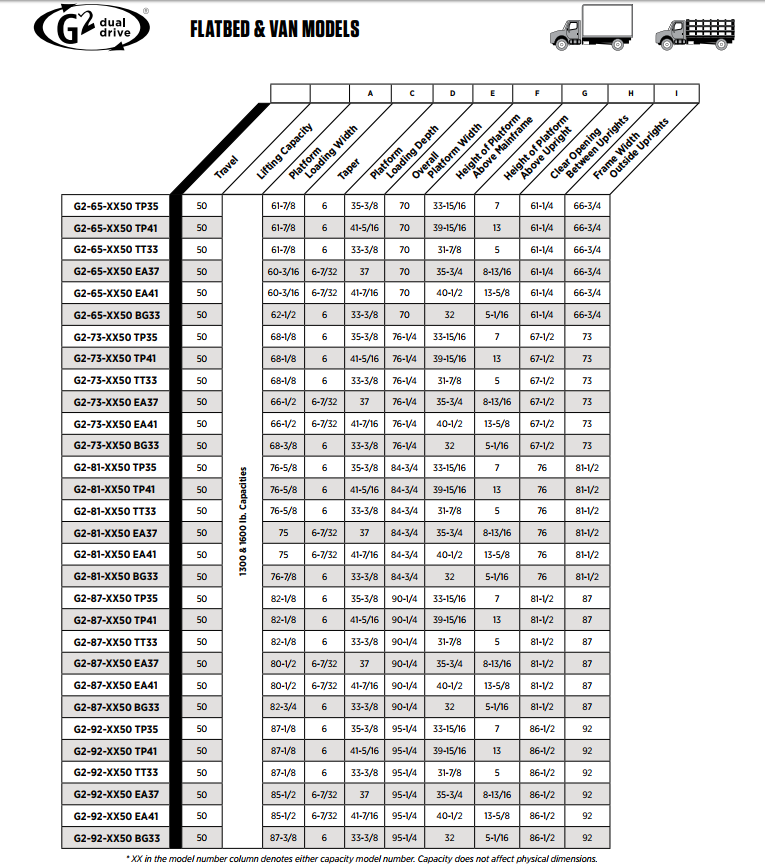Supporting larger platforms, G2 Series models are compatible with flatbed, stake & van bodies & offer a wide selection of platform materials to accommodate almost any industry application.