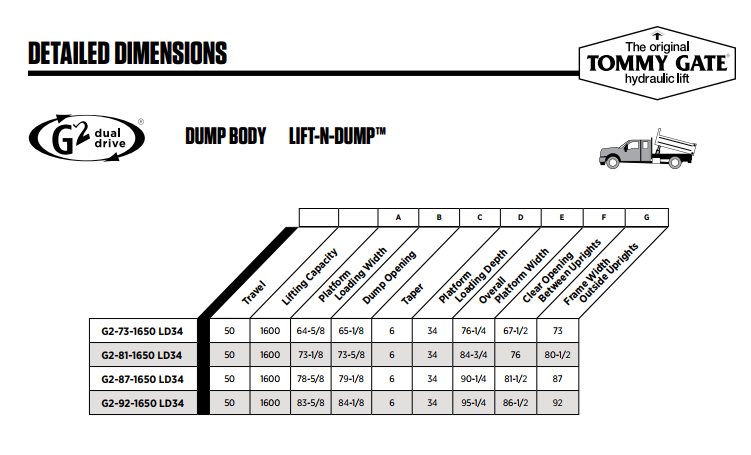 Tommy Gate Dump Body - G2 Series (G2-87-1650 LD33)